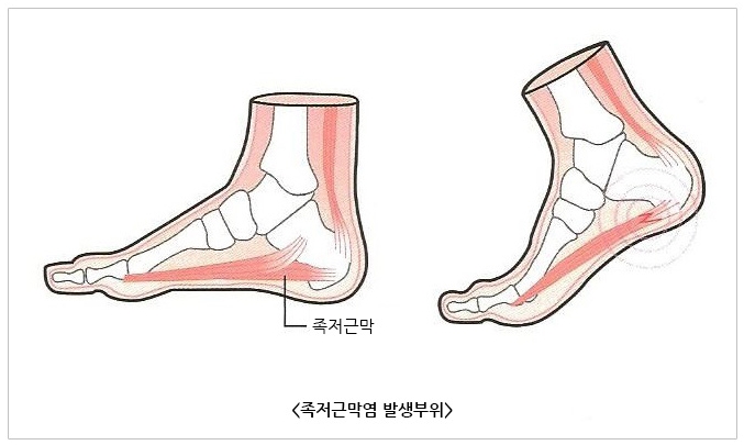 족저근막은 발뒤꿈치뼈에서 시작하여 발바닥 앞쪽으로 붙은 두껍고 강한 섬유띠로, 발바닥의 굴곡모양을 유지하고 충격을 흡수하며 보행 시 중요한 역할을 합니다.