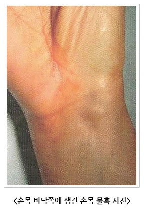 손목 마디 근방에 생기는 호으로, 손목등이나 손목 바닥 쪽에 잘 생깁니다.