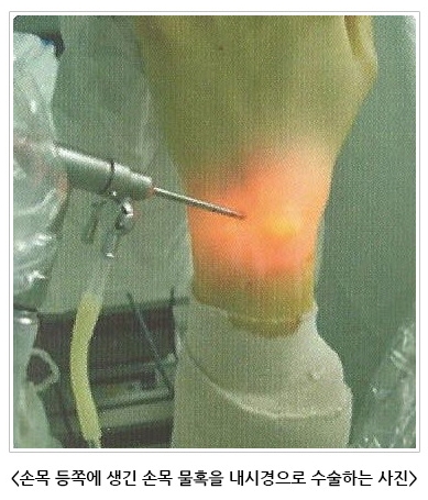 그래서, 손목 마디의 막과 함께 혹 자체를 없애는 수술이 권장됩니다.