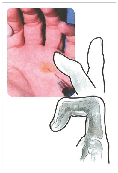 주로 좁아진 부분은 손바닥의 손금 중에 손가락에 가까운 가로방향 손금부위로, 이 곳을 눌러 보시면 염증으로 인해 아프고, 혹 같은 것이 만져질 수도 있습니다.